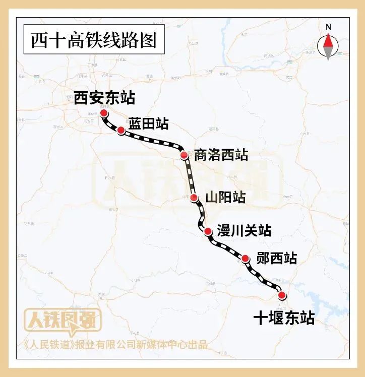 西十高鐵正線全長(zhǎng)255.7公裏,設計時速350公裏,途經西安、商洛、十堰三市,接入已建成的漢(hàn)十高鐵。