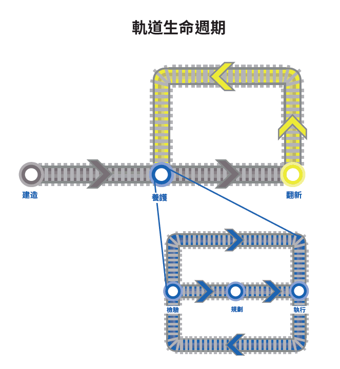 軌道建造、養護和翻新是顧客實行的重要生命周期活動,以管理極爲關鍵和昂貴的資産,也就是他們的軌道。