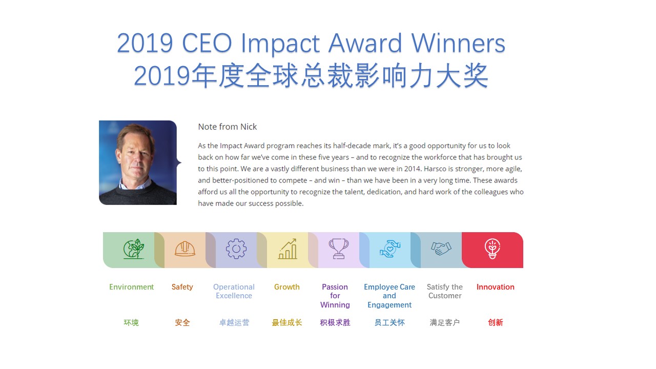 哈斯科全球總裁Nick 說 今年是“全球總裁影響力獎”計劃實行的第5年,這一獎項對我們來說是一個能回顧過去所取得成就的好機會,並且讓我們對一路走來所付出的努力有瞭更清楚的認知。 與2014年相比,我們的業務已經大不相同。如今的哈斯科更加強大,靈活和更加具有競争優勢。 這些獎項讓我們大家都有機會看到那些對公司有傑出貢獻的同事們的才能,奉獻精神和辛勤工作。